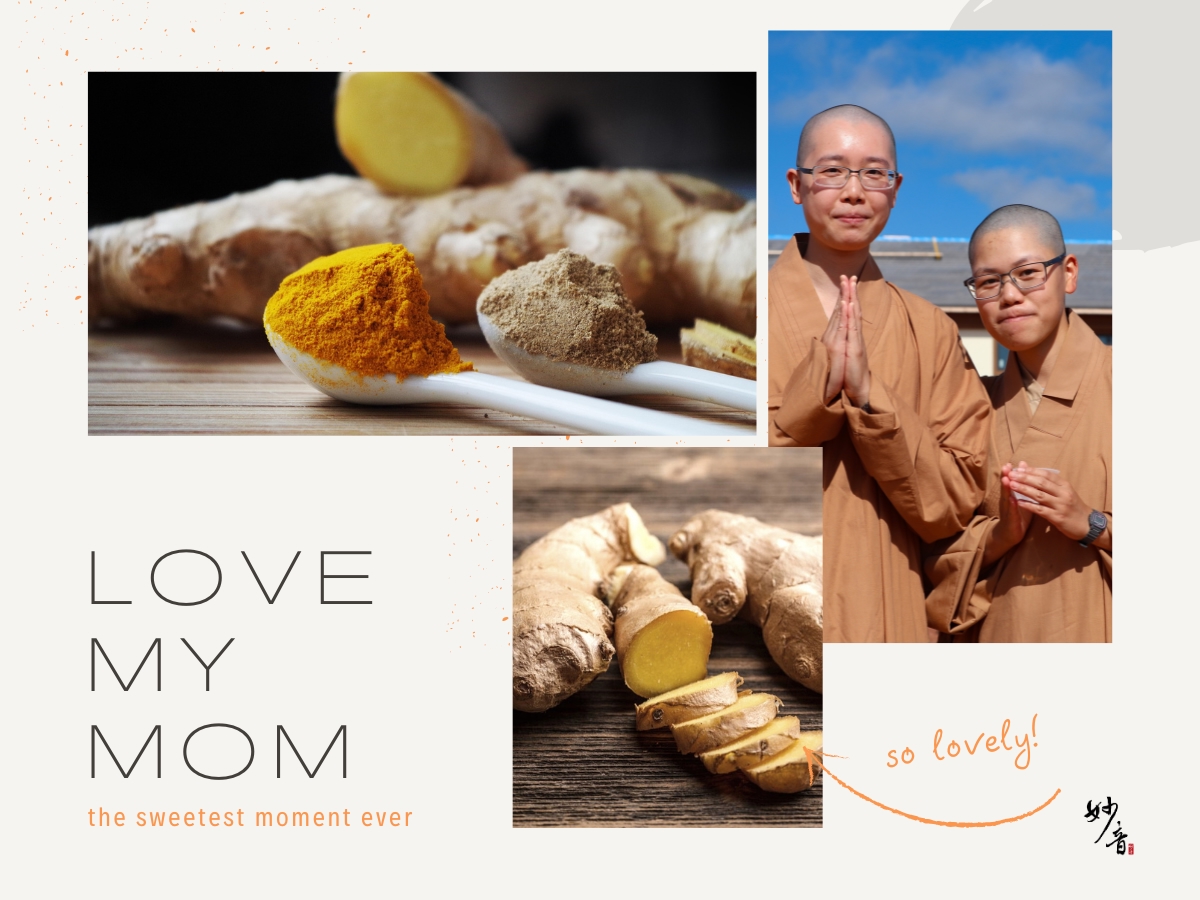 我忽然明白母親帶來的不僅是薑粉本身,而是深深的牽掛與一份最純粹的愛。那一包包價格不菲的有機薑粉,傳遞著媽媽最在意的掛念:她希望我們在寒冷的P島不要受寒、有健康的身體可以追隨師長、好好學習五大論。哪怕身處遙遠的台灣,跨越千山萬水,她也想盡力給予我最好的。